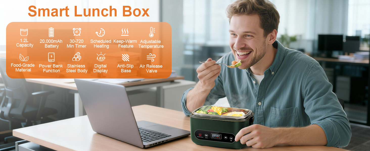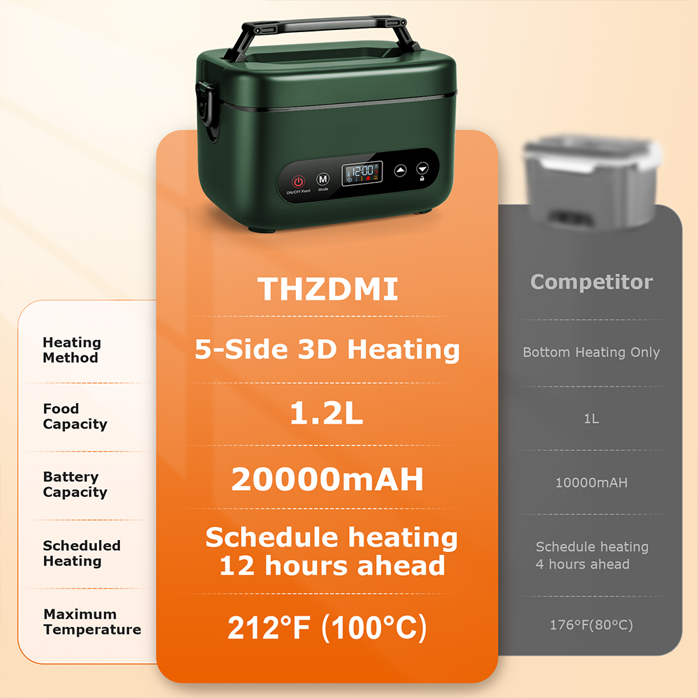 Equipped with a powerful 20,000mAh rechargeable battery, enjoy up to 3 hours of heating or 6 hours of insulation. The LED power display keeps you informed, while a 3.5-hour charge powers your meals for the whole day. Also functions as a power bank compatible with most phones.
