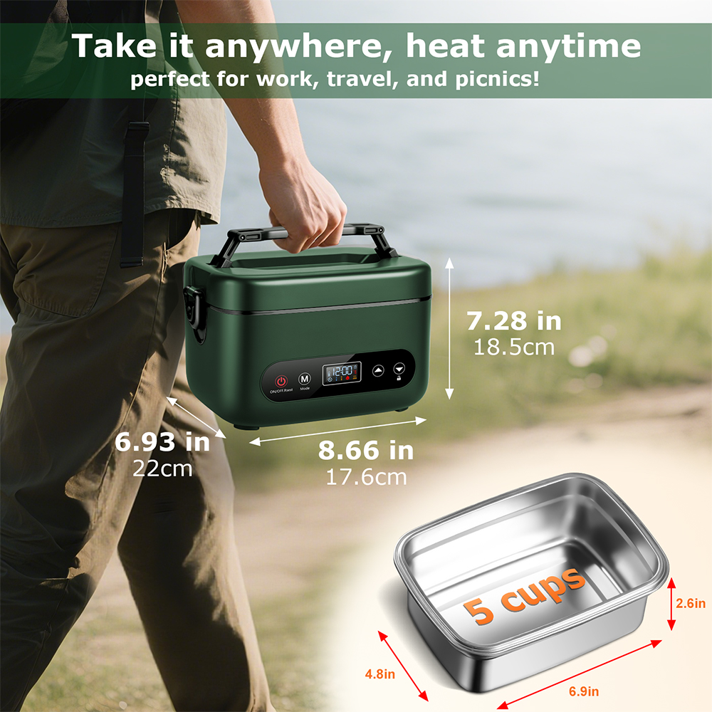 1.2L Cordless Electric Lunch Box – 20000mAh Rechargeable Portable Food Warmer with 5-Sided Heating, Auto Temperature Control, Leakproof & BPA-Free – Perfect for Office, Truck, Outdoors Green
